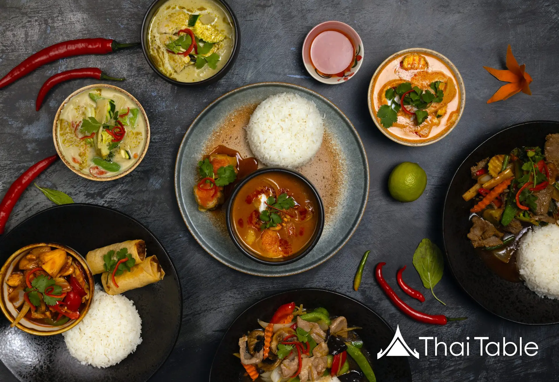 13.95Vegetable green curry, Jasmine rice, Vegetable spring rolls