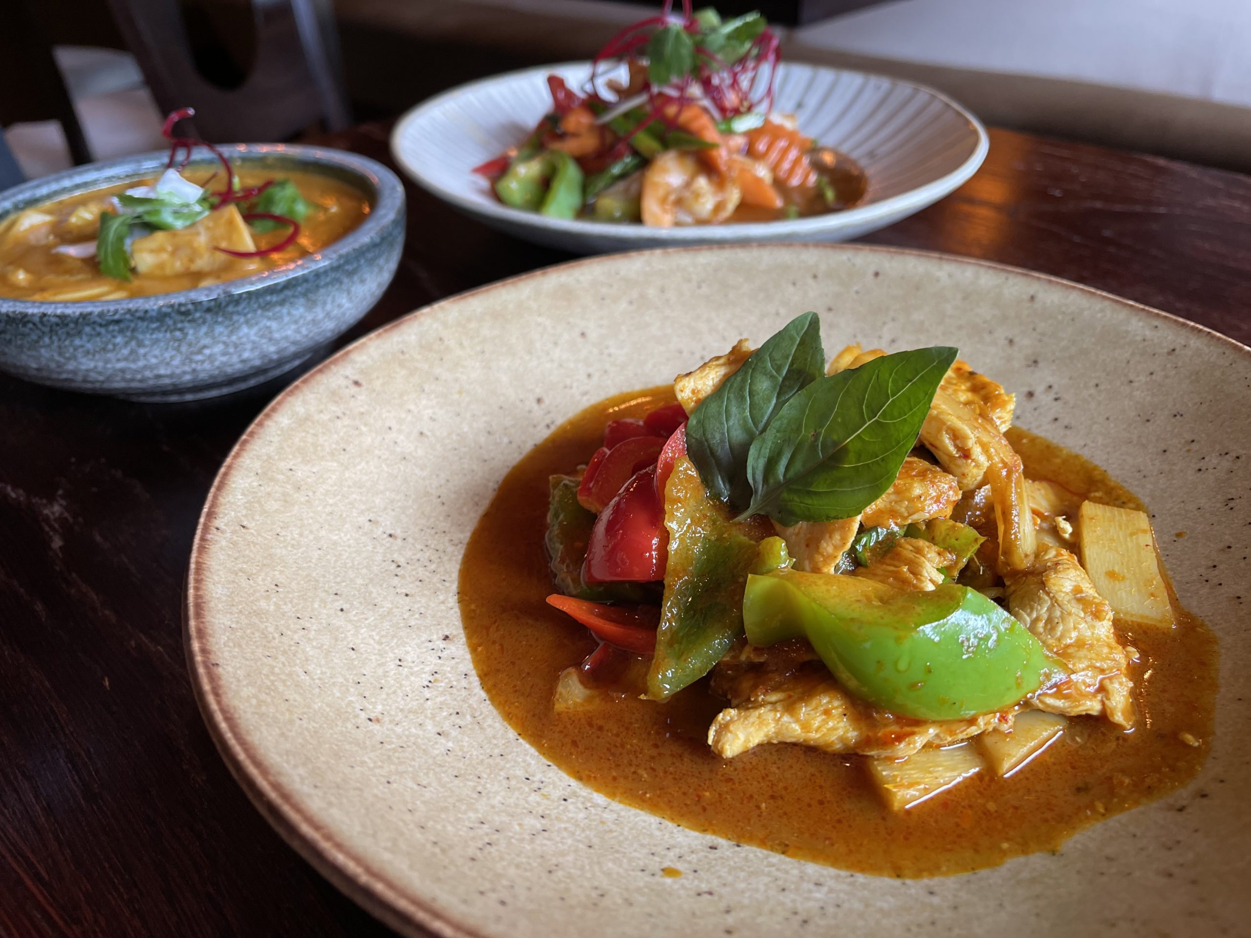 Traditional thai dishes with a fresh, modern spin. Inspired by seasonal and local produces Seasonal Recommendation ไก่กอและ GAI KOLAE Southern Thai grilled chicken skewers, lavishly coated in a rich, aromaticcoconut-curry marinade มัสมั่นปักษ์ใต้ SOUTHERN THAI MASSAMAN CURRY (n) ‘Massaman Pak Tai’ Aberdeen Angus steak braised withSouthern Thai Massaman curry paste, coconut milk, palm sugar, ginger,tamarind puree, Christmas spices, cardamom pods, potato and young onion ยำทะเล SEAFOOD SUMMER SALAD seasoned with fresh chilli, red onion, lime and fish sauce dressing(can be made mild, please let us know) ปลากรอบราดซอสกระเทียมพริกไทย CRISPY SEA BASS FILLETS WITH CORIANDER AND BLACK PEPPER fresh pepper, Thai red chillies and young onion