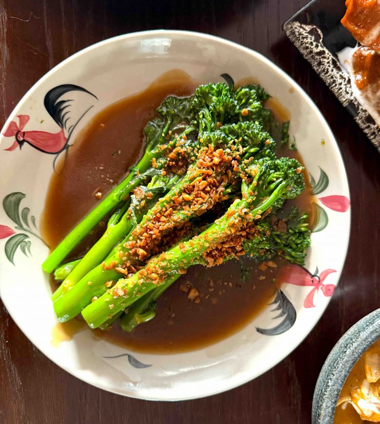 STIR-FRY TENDERSTEM BROCCOLI GARLIC AND OYSTER SAUCE (v)