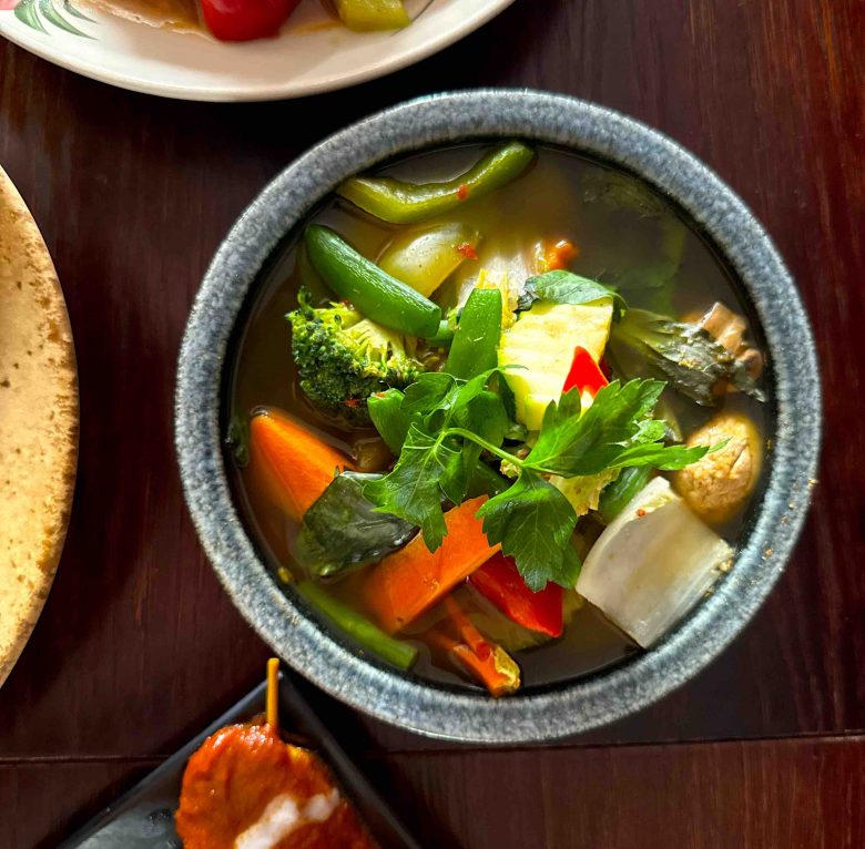 ‘Gaeng Om’ – a non-coconut herbal curry; a comforting bowl of herbal, aromatic delight with perfectly crisp vegetables