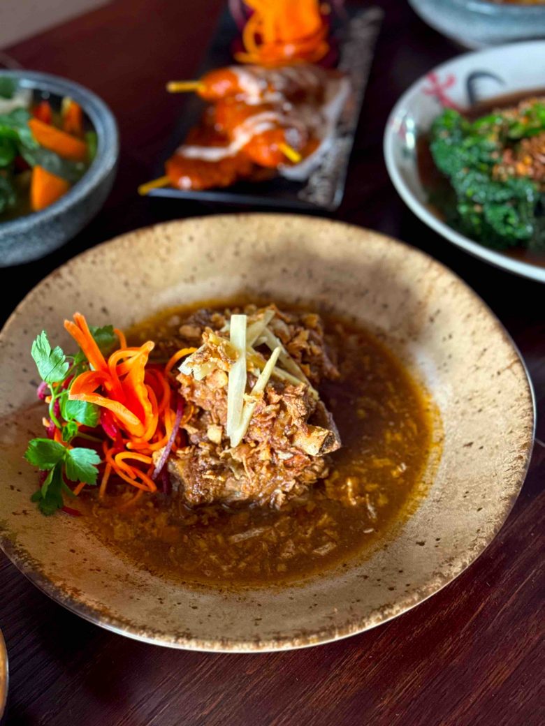 ‘Gaeng Hang Lae’ – a regional favourite of slow-cooked pork ribs in fresh homemade curry paste, fresh ginger and warming Thai spices