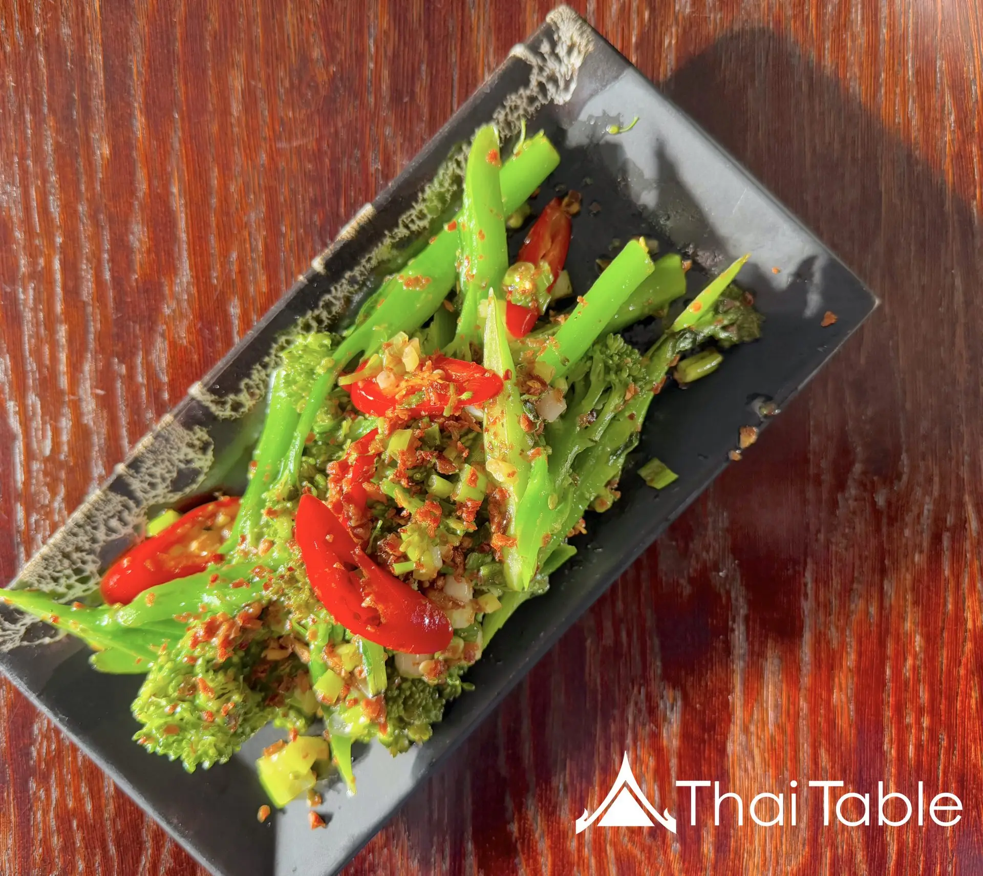 fresh chilli, bamboo shoots, fine beans and Thai basil leaves